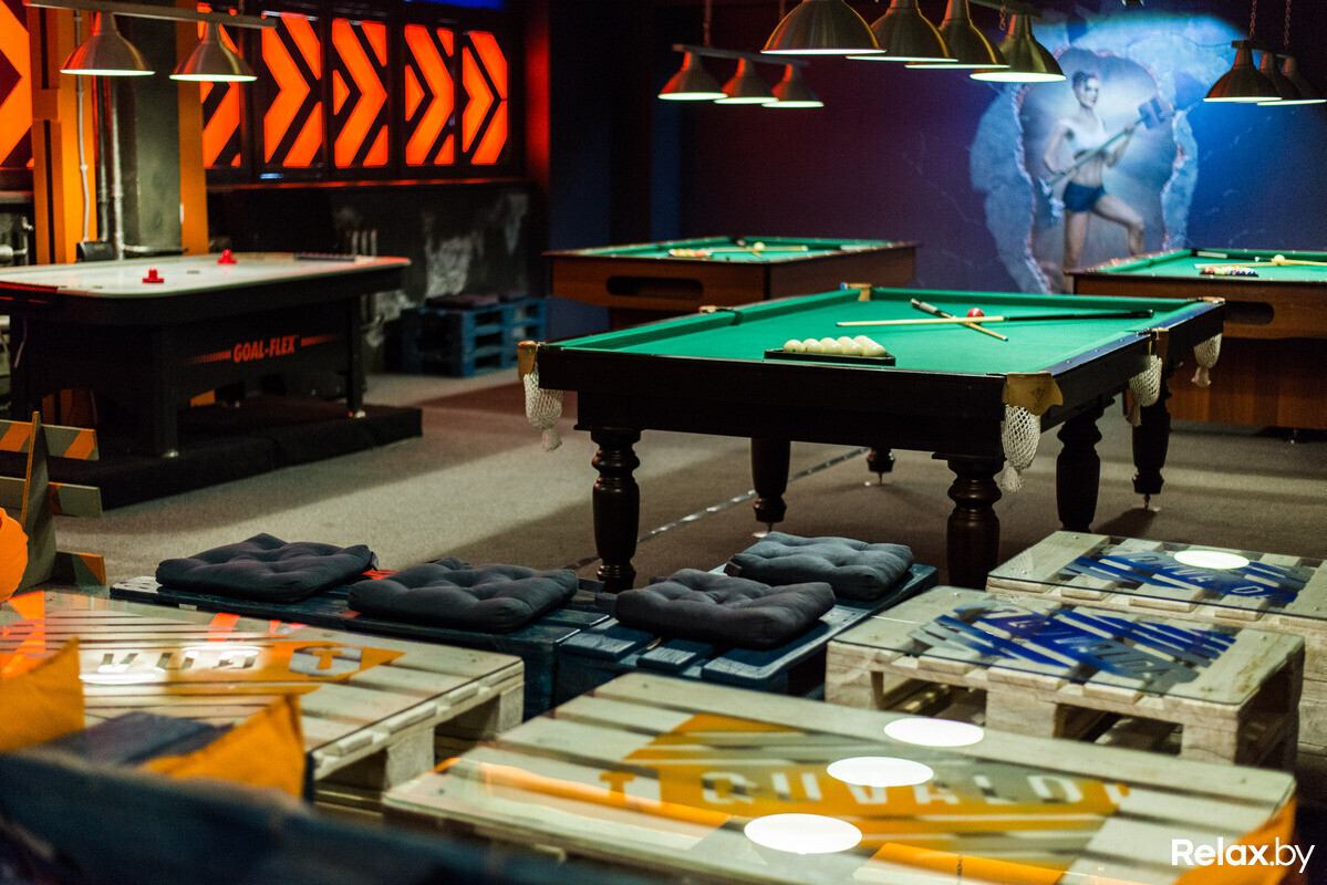 Тут можно найти бильярд (в том числе, морской), аэрохоккей, электронный профессиональный безопасный дартс, настольный теннис.