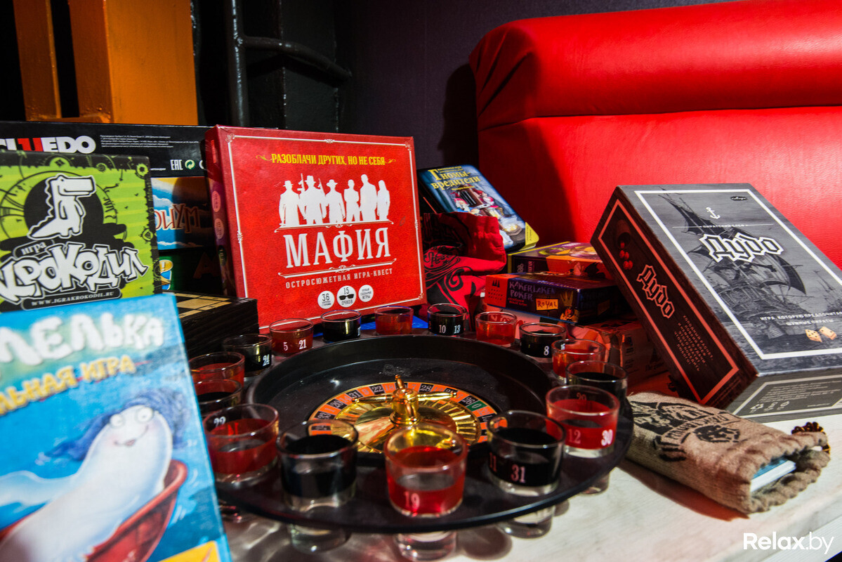 «Крокодил», «Мафия», «Манчкин», «Дженга», «Активити», «Диксит» и это далеко не все. А еще тут можно заказать кальян.