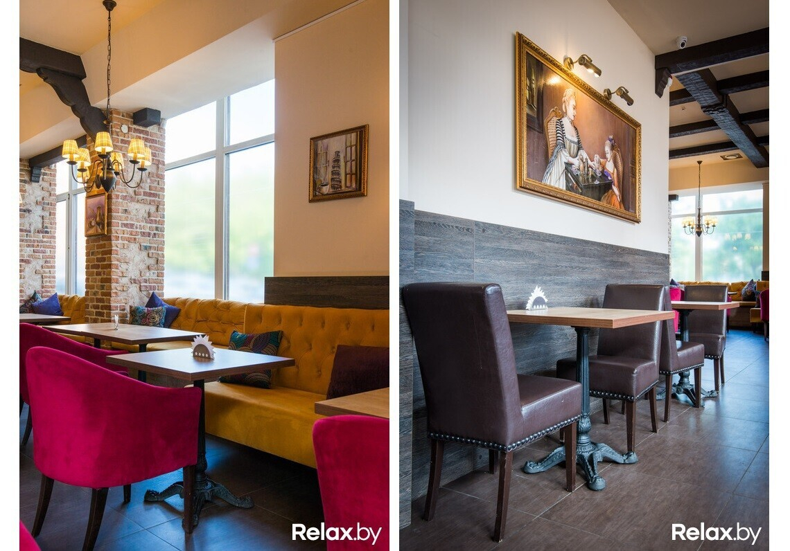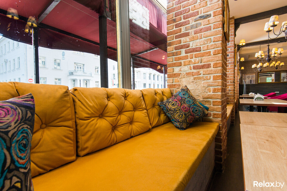 Тут освежили интерьер: по словам создателей, теперь благодаря теплым желто-ягодным тонам в интерьере, сама кофейня напоминает пирожное. Разместиться в зале предложат за небольшими столиками на стульях-креслах (кожаных и ярких мягких) или пухлых и длинных диванах в окружении ярких подушечек. Дополняют атмосферу оголенная кирпичная кладка и тематические картины на стенах.