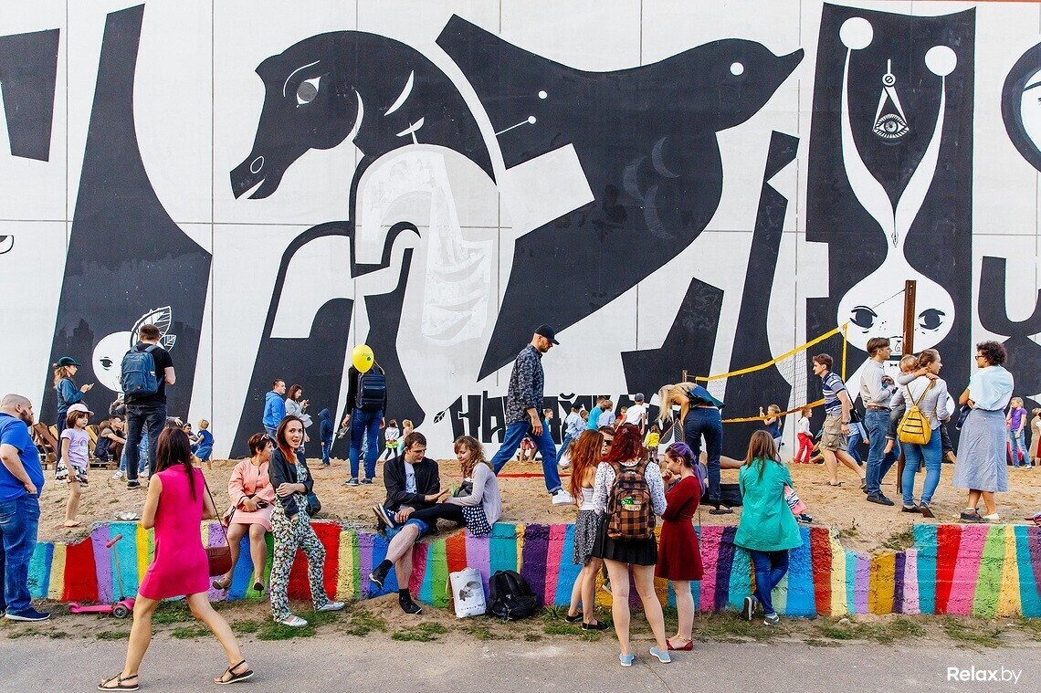 В честь закрытия уже четвертого по счету фестиваля уличного искусства Vulica Brasil на улице Октябрьской, «где плотность искусства на квадратный метр с каждым днем увеличивается», прошла масштабная вечеринка: 2 сентября все остановились, чтобы посмотреть, что получилось (в этом году тут творили 25 райтеров), а потом пустились танцевать.