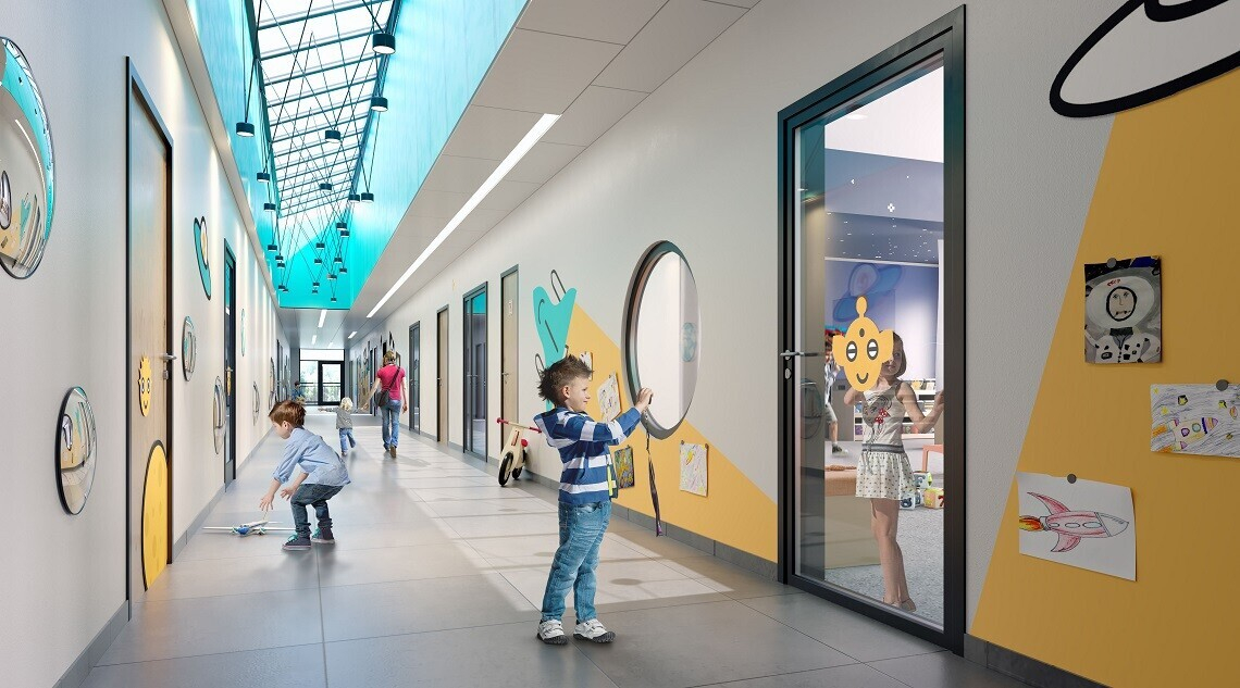 В самих группах появятся интерактивные игровые панели и — обязательно — звездное небо на потолке. Дизайнеры пользовались фотографиями НАСА при оформлении помещений. Кстати, в продолжение космической тематики окна в некоторых помещениях выполнят в виде иллюминаторов.