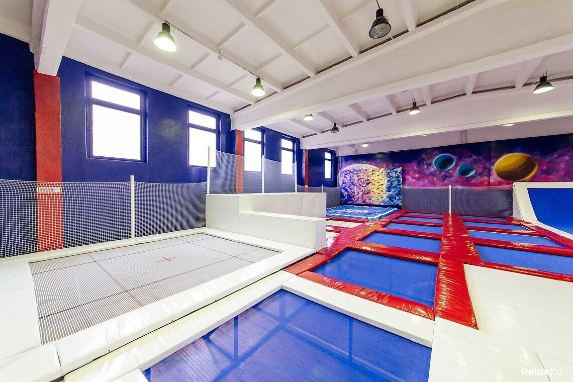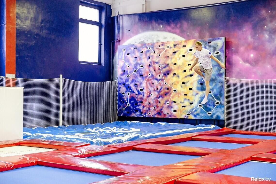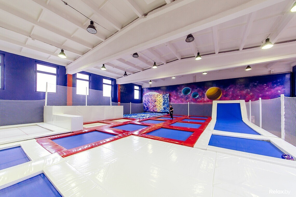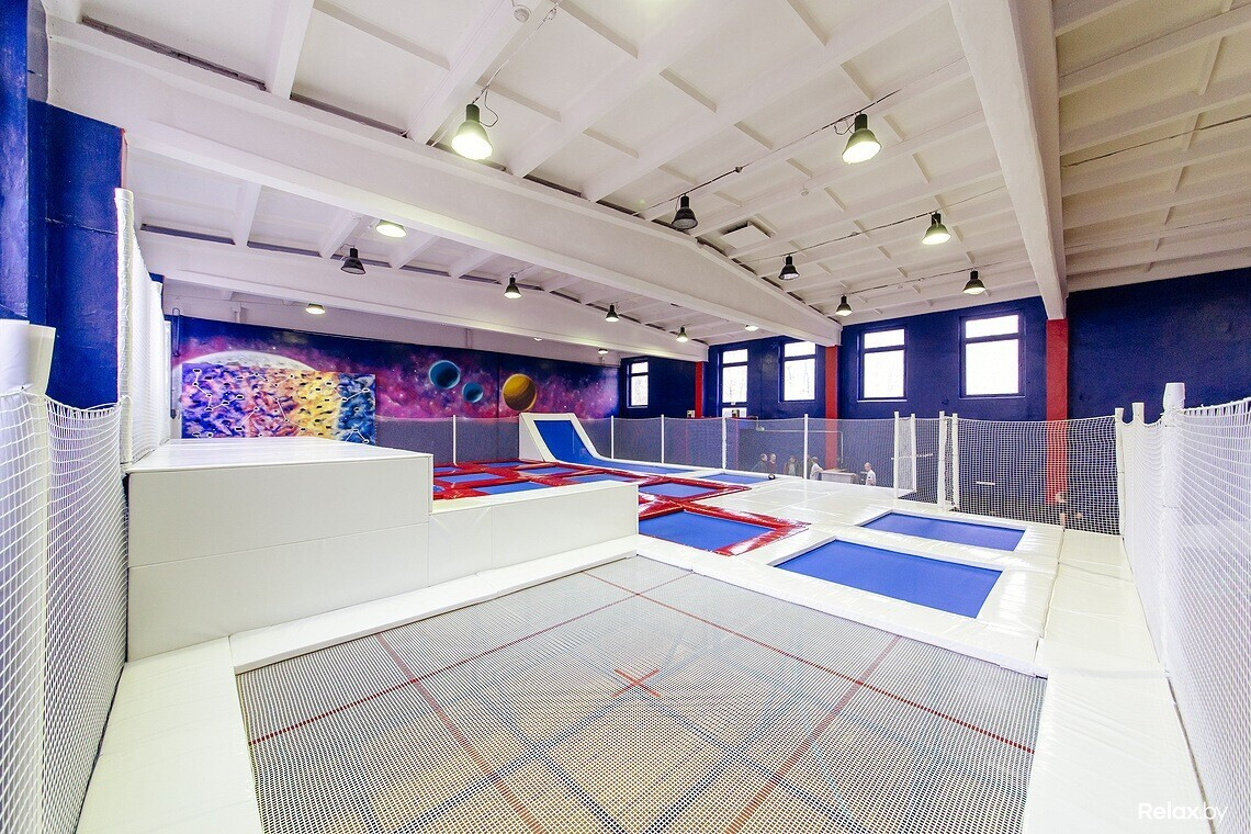 Всего в зале 16 батутов, скалодром на четыре трассы, воздушная подушка (для безопасного приземления после прыжков на батуте), а также детская площадка. В отдельных помещениях есть раздевалки, душевые и даже комната, где можно устроить праздник, например, детский день рождения, корпоратив или просто семейное событие.