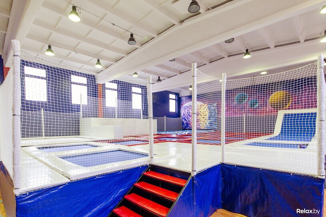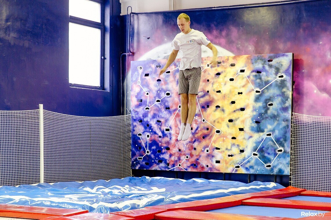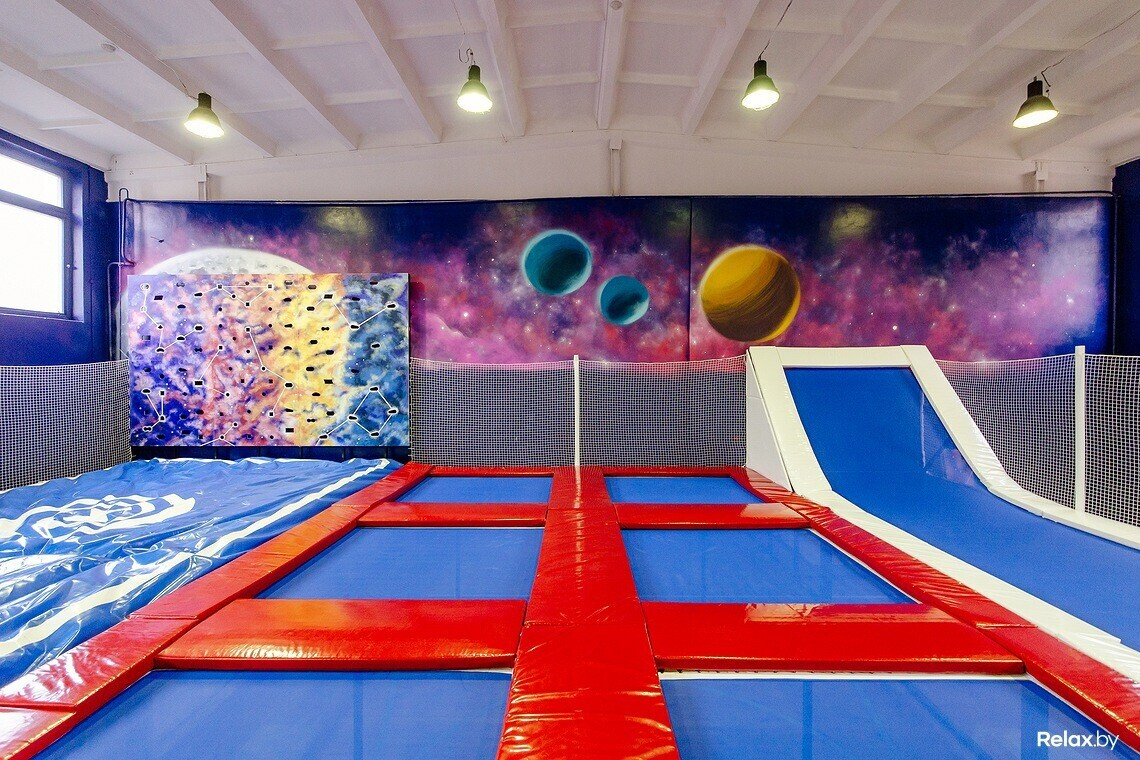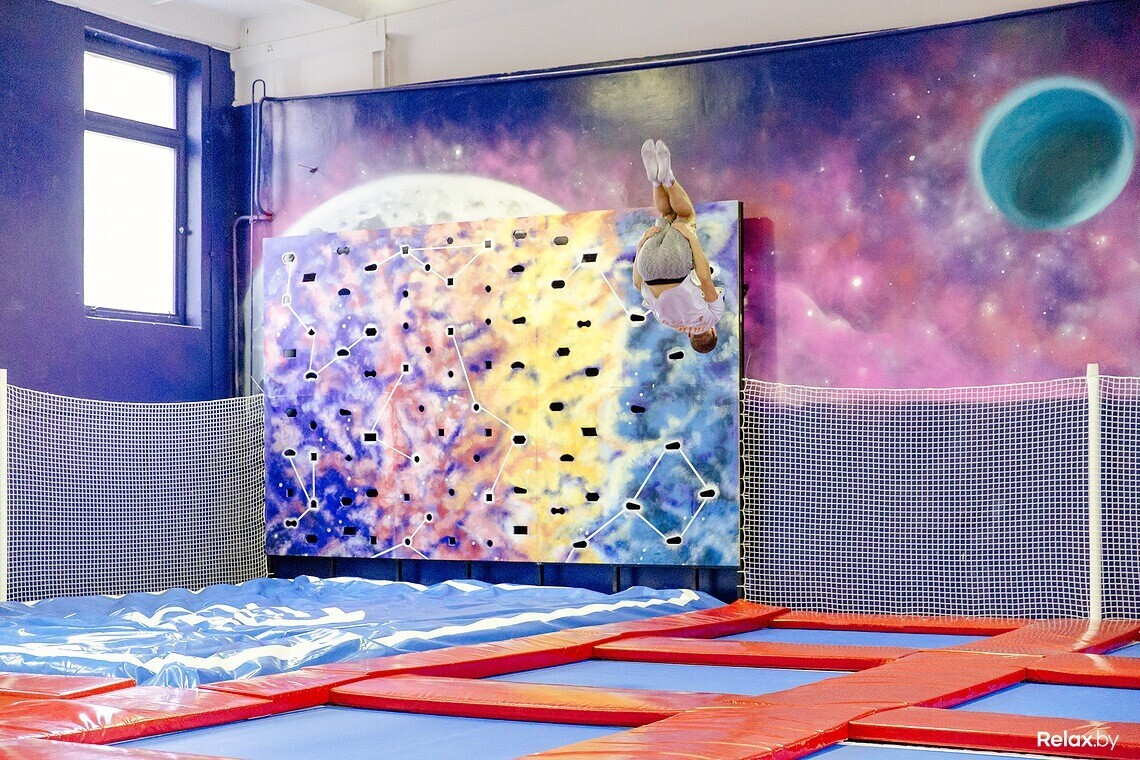 Всего в зале 16 батутов, скалодром на четыре трассы, воздушная подушка (для безопасного приземления после прыжков на батуте), а также детская площадка. В отдельных помещениях есть раздевалки, душевые и даже комната, где можно устроить праздник, например, детский день рождения, корпоратив или просто семейное событие.