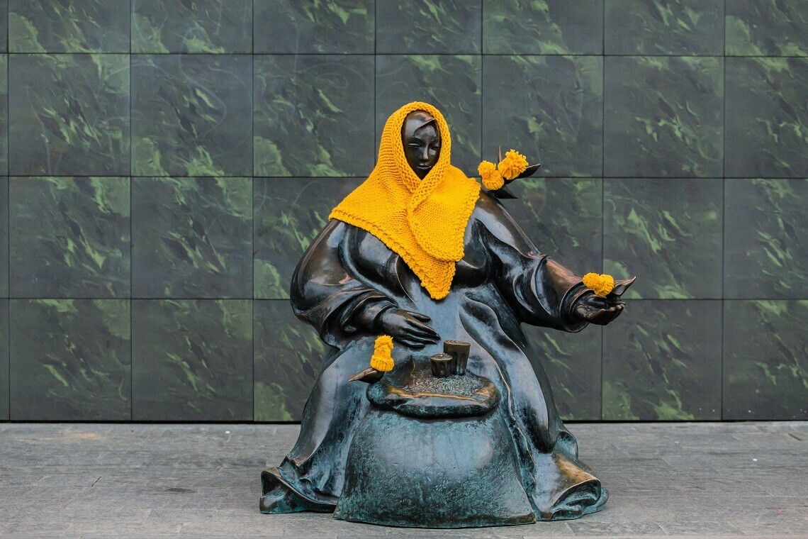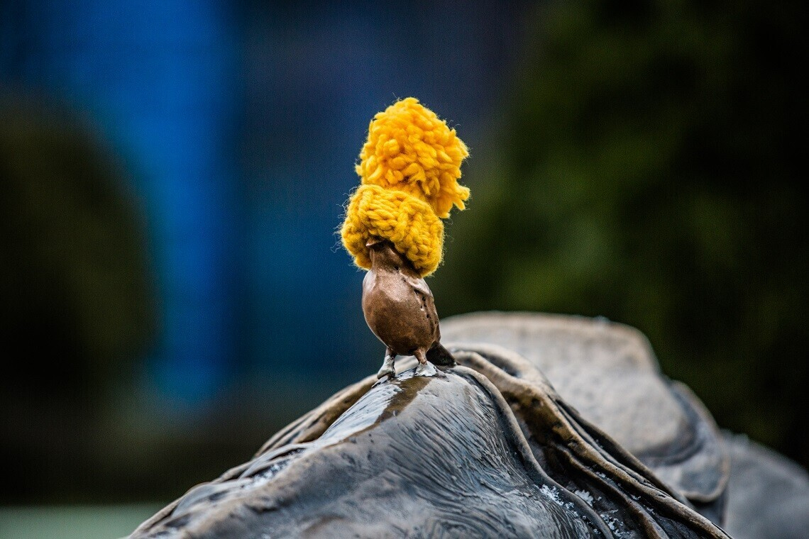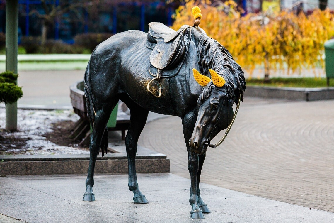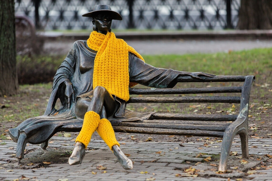 Фотофакт: зачем на 15 скульптур в Минске надели желтые шарфы и шапки