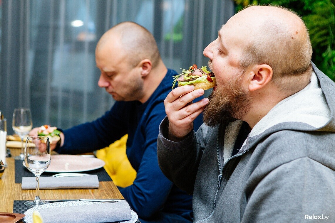 Конечно, кто-то может сказать, что я несколько ангажирован из-за своей позиции в Relax.by, но все же хочу попросить вас доверять сказанному. К блюду ни у кого из присутствующих не было никаких претензий. Это хорошие брускетты с очень правильным свежим хлебом с хрустящей корочкой и гармоничными топпингами.