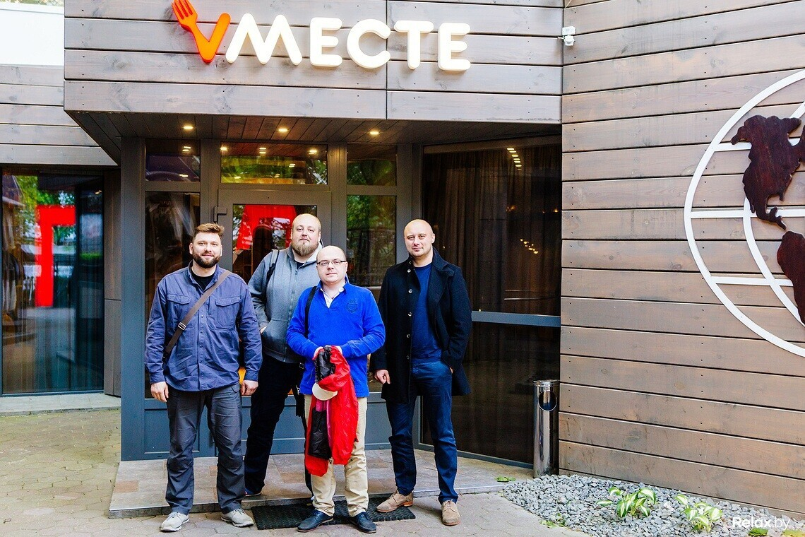 Мы собрались вовремя и зашли в зал. Гардероб для тех, кто в верхней одежде, остальным — столик под знаменитой фотостеной «Vместе». Да, место нам выделили, пожалуй, лучшее в ресторане, за что им отдельная благодарность.