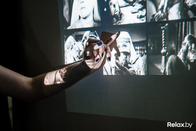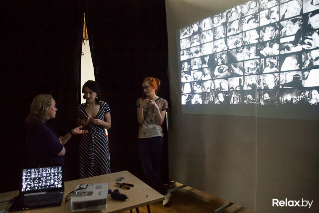 Наташа, студентка ЕГУ, представляет на выставке свою работу «Третий смысл». Это видеоинсталяция, включающая сотни замерших кадров фильма «Иван Грозный». На одном экране — крупные планы царя, на стене напротив — Ефросиньи. Спрашиваем: что все это значит?