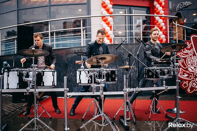 Возле ресторана можно видеть обещанную колонну байкеров, под дождем мокнут барабаны, на которых играет импозантное трио «Стресс», и гости, которые дождались-таки настоящий вертолет с Полковником Сандерсом: он приземлился прямо около метро. Кстати, чтобы компенсировать капризы погоды, возле заведения разместился автомат с бесплатным кофе. Праздник завершат фейерверком и файер-шоу. Все «огненные» дополнения запланированы на 21:00, так что гулять собираются целый день.