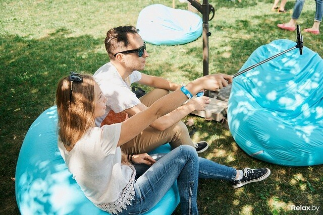 Участники арт-пикника позаботились о том, чтобы людям было куда сесть, стоптав ноги: установили здесь множество зон с шезлонгами, креслами-мешками, мебелью из поддонов и даже кубами из соломы. Однако сидячих мест было явно меньше, чем гостей, так что опытные посетители, прихватившие пледы, находили наиболее симпатичную зелень и «падали» прямо на нее. Подумали даже о гостях с сигаретами в сумке: оборудовали отдельную зону с пепельницами-урнами и креслами-мешками.