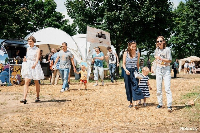 Немало места заняла зона с торговыми точками от рукодельников и отечественных дизайнеров. Здесь можно было найти вещицы на любой вкус: растения в невообразимых бетонных горшках, одежду, обувь, сувениры, украшения, сумки и рюкзаки, посуду, лампы, уникальные деревянные аксессуары (например, часы, очки и чехлы для телефонов), вручную разрисованные подушки, книги и виниловые пластинки в сумасшедшем количестве. Кстати, как рассказали Relax.by организаторы, продано было почти все, что привезли: торговцы даже уехали раньше, чтобы успеть подготовиться, так что сегодня здесь можно будет найти много интересного.