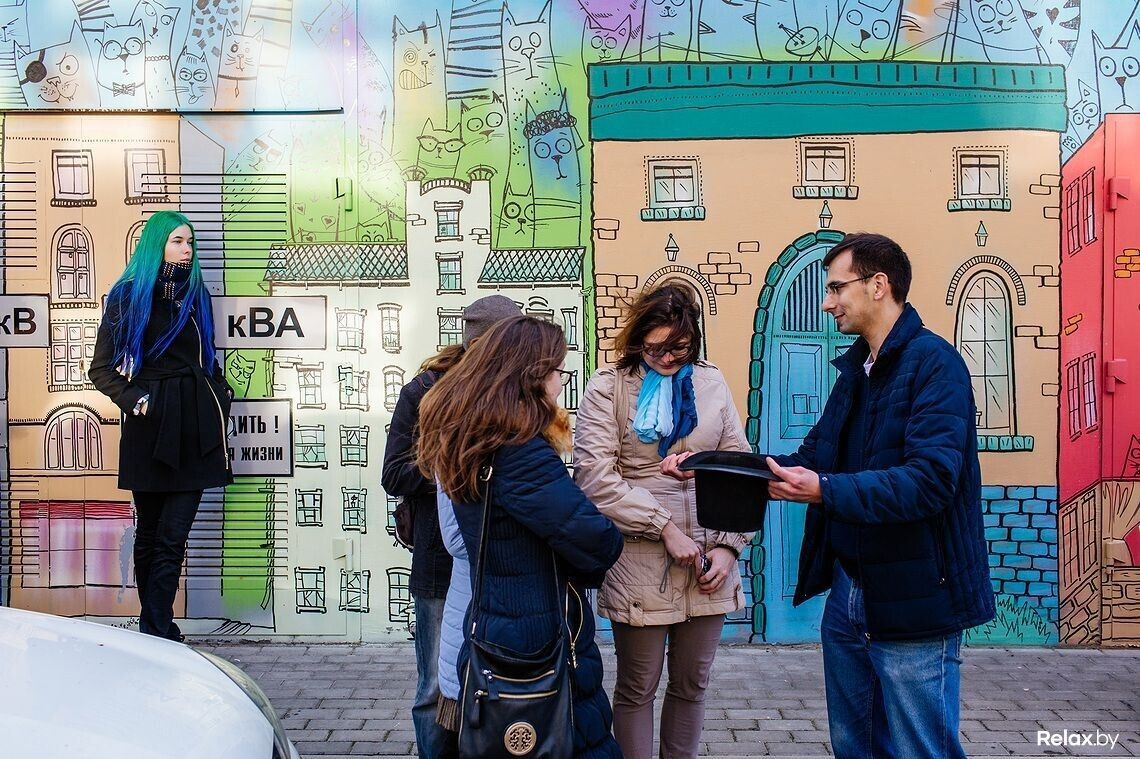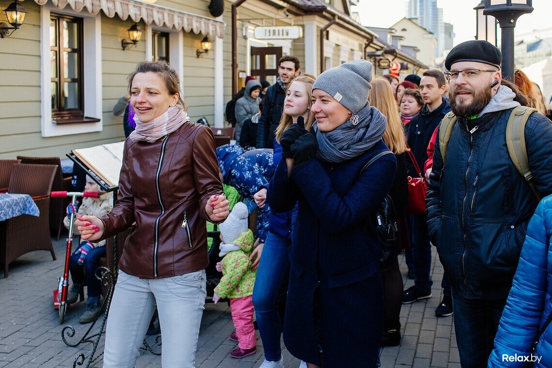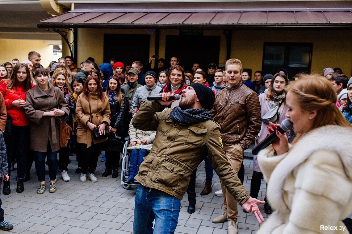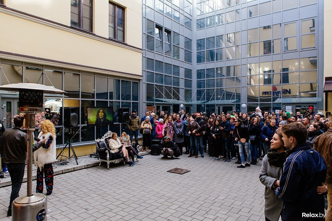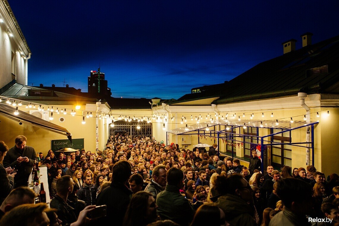 На первое в стране стрит-караоке не пробиться: в недавно созданном неофициальном дворике Чапского около одноименного бара толпа с максимальным удовольствием коллективно тянет знакомые «Экспонат» и «Батарейку». К микрофону пускают любого: достаточно лишь стойко дождаться своей очереди. Особенно стеснительным помогает вокалист-профессионал.