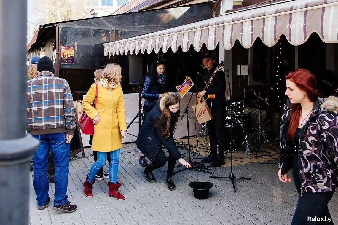 А пока по улице гуляют мимы; людей веселит парень в космическом шлеме; ранние гости неспешно перемещаются между тремя главными локациями вечера: сценами около Don Coffe'on, блинной «Дэпо» и магазином BeerCap Barshop. Именно здесь на протяжении нескольких часов сменяются лица: как в толпе, окольцевавшей сцены, так и на них самих, за музыкальными инструментами. Сегодня по очереди выступают 15 уличных банд. Говорят, кастинг был суровым; отбирали только самых интересных.