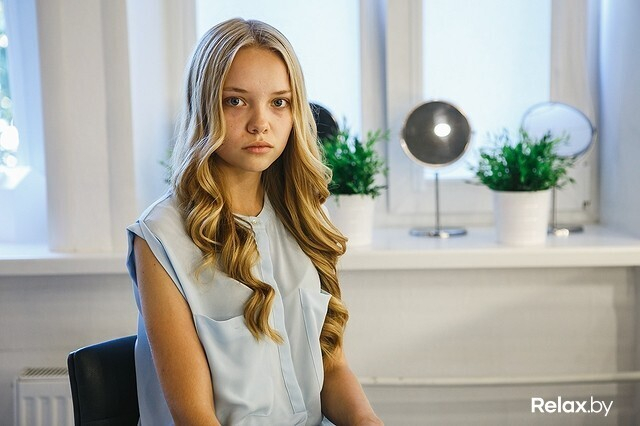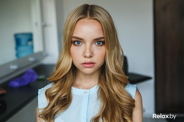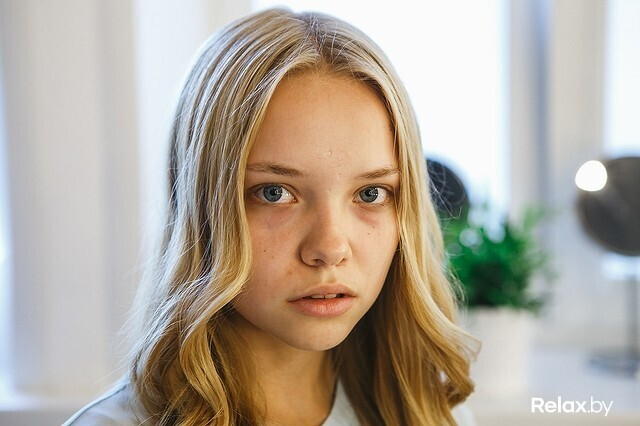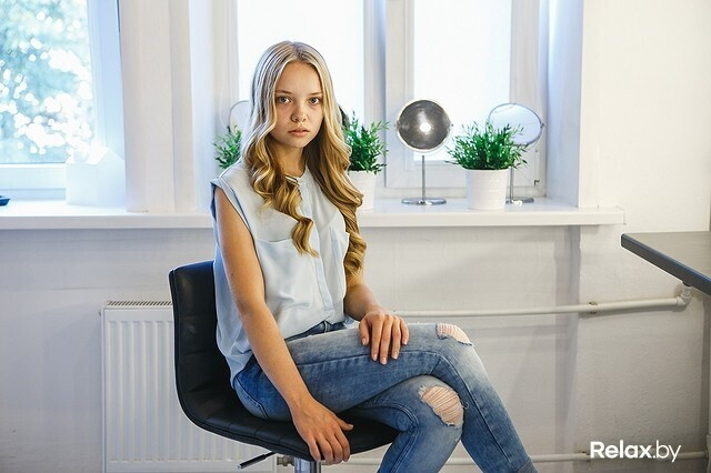 Когда Relax.by приехал в студию, с нашей юной моделью уже поработала парикмахер Татьяна Крупская. Как мы выяснили, в школу девочка красится, но совсем немного, используя всем известный метод научного тыка. Когда грядут серьезные мероприятия, наша героиня прибегает к помощи визажиста.