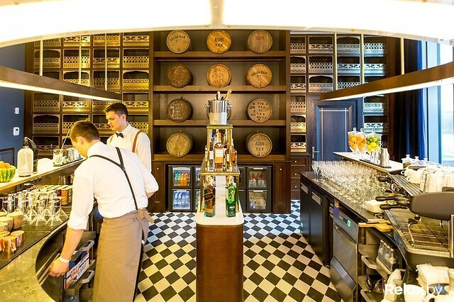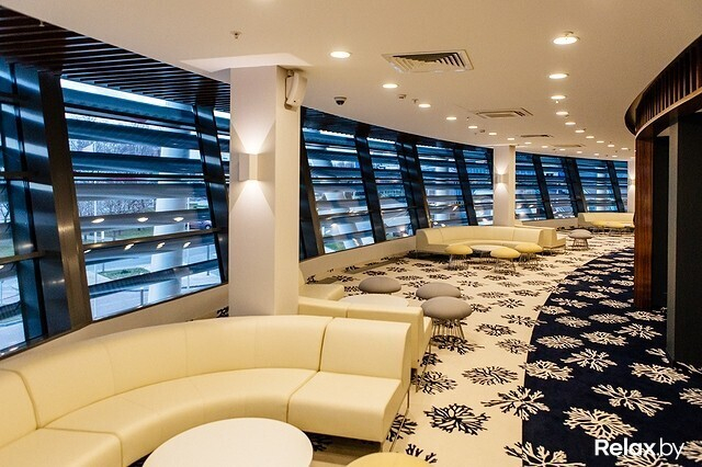На первом же этаже реализована концепция Great room, идея которой состоит в том, чтобы гости отеля могли использовать общественное пространство так, как они используют его дома. Здесь находятся барная стойка, множество разбросанных неподалеку столиков с диванами и креслами, а чуть дальше — VIP executive lounge, попасть в который смогут только постояльцы номеров люкс, премиум и президентского номера, а также высокопоставленные гости.