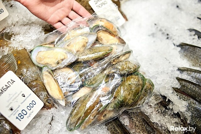 На прилавках минских магазинов также можно найти моллюска вонголе (450 тысяч), раковина которого закрывается от легкого стука, и морские черенки (355 тысяч), что реагируют на прикосновение. В упаковке с морской водой прибывают живые голубые мидии (160 тысяч).