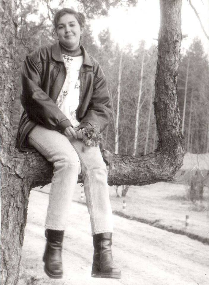 «Это были тот возраст и то время, когда я ничего не покупала сама. Тогда родственники стали ездить в Польшу, и в моем гардеробе появились бордовый спортивный трикотажный костюм, ярко-бирюзовая куртка до середины бедра с вышитыми пальмами и какие-то джинсы. Часть вещей привозилась из Польши, часть ― из «сэконда». Из экстрима помню лосины ярко-малинового цвета, они пахли чем-то странным, и платье ― «летучая мышь».