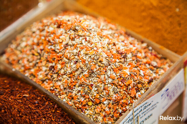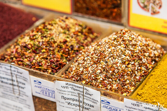 Среди прочих есть на прилавке и «сельская» приправа: «По-вашему это называется “бабушкин рецепт” — чисто белорусский состав: смесь душистого перца, кориандра, укропа и тмина. Часто берут для колбасок, полендвицы и сала». Хотя для последнего есть и отдельная смесь из сушеного чеснока, базилика, красного и черного перцев, тмина, семян укропа и горчицы.