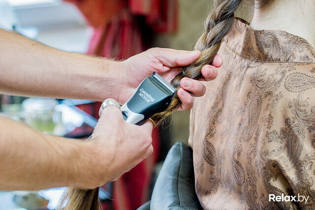 Поговорив с Ольгой и узнав все ее пожелания и предпочтения, топ-стилист салона Илья Симончик посовещался с Натали Роше и приступил к работе. Первым делом состоялось торжественное обрезание косы.