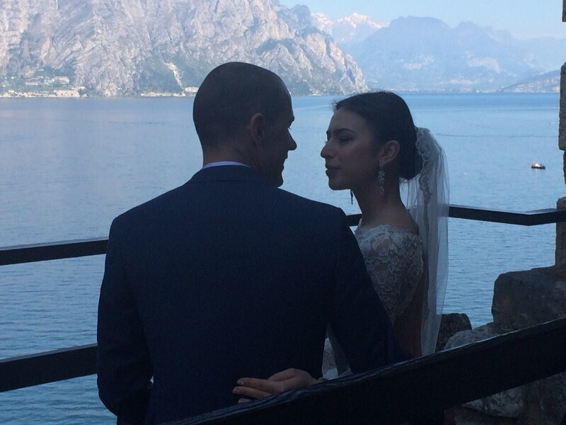 Не последнее место в выборе страны занимала логистика: куда удобнее было добираться. Местом свадьбы ребята выбрали небольшой городок на севере Италии неподалеку от Вероны — Мальчезине. Город расположен на берегу живописнейшего озера Гарда. Одной из самых известных достопримечательностей этой местности считается замок Скалигеров. Сами итальянцы очень любят проводить здесь свадебные церемонии и фотографировать невообразимой красоты пейзажи.