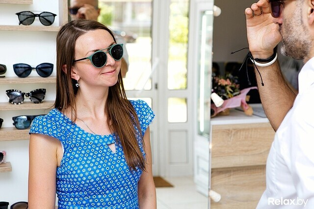 на проспекте Машерова, 54. Там мы подобрали Юлии солнцезащитные очки, а также очки с прозрачными линзами для делового образа.
