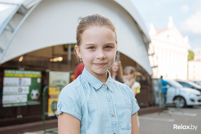 — Мне 11 лет, танцами занимаюсь с четырех. Какими? Спортивно-бальными. Услышала по радио рекламу и решила попробовать. Сейчас мой друг придет, будем учиться с ним вместе.