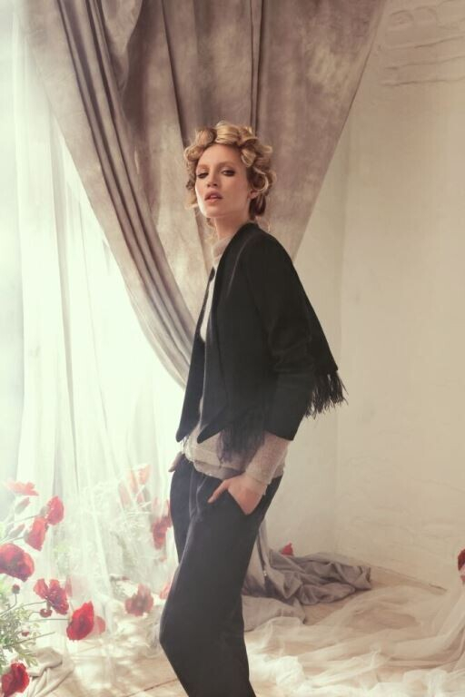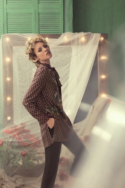 — В новой коллекции использовано много добротных тканей, качественного теплого трикотажа с содержанием кашемира и шелка, а также современных силуэтов и трендовых укороченных брюк, — делится Алена. — В различных моделях часто используются декоративные цветы, сделанные вручную, которые придают одежде некое авторское звучание. Удобно, что в некоторых моделях цветы сделаны в виде броши, поэтому в любой момент их можно снять.