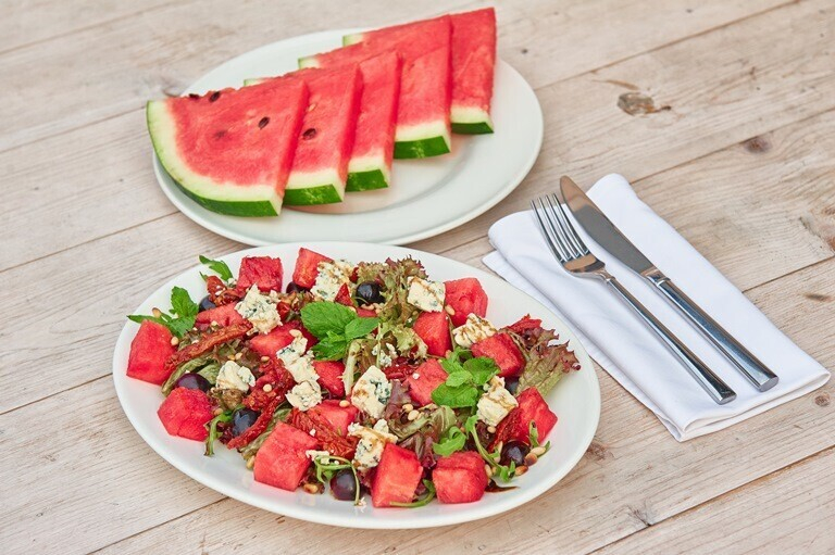 В заведении на Зыбицкой помимо основного меню часто вводятся «кратковременные» позиции — например, рождественское предложение, которое будет действовать всего месяц, недельное или даже выходное. «Мы стараемся прививать гостям новые вкусы, поэтому постоянно придумываем новые блюда. Сейчас, например, у нас можно попробовать салат с арбузом, причем благодаря различным соусам он может быть не только сладким». Помимо обеденных предложений, о которых мы уже
