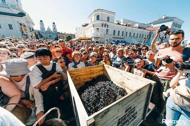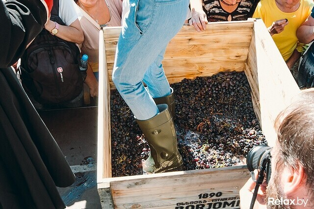 Одним из самых ожидаемых пунктов программы стала демонстрация колоритного грузинского обычая — давки 100 килограмм винограда в большой бочке. Облачившись в специальные резиновые сапожки, длинноногие столичные красавицы, среди которых была и Мисс Беларусь—2016 Полина Бородачева, провели знаменитый ритуал. Как отметил ведущий, в Грузии принято давить виноград для вина именно ногами, потому что считается, что если для этих целей использовать какую-либо технику, то она может раздавить косточки. А попав в напиток, они сделают вино горьким и невкусным. «Ну, пока они вино делают, мы пойдем выпьем!» — радостно заявил мужчина из толпы и вместе с семьей направился в сторону точек общепита.