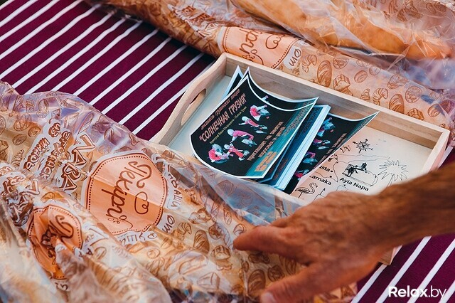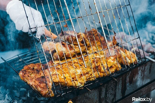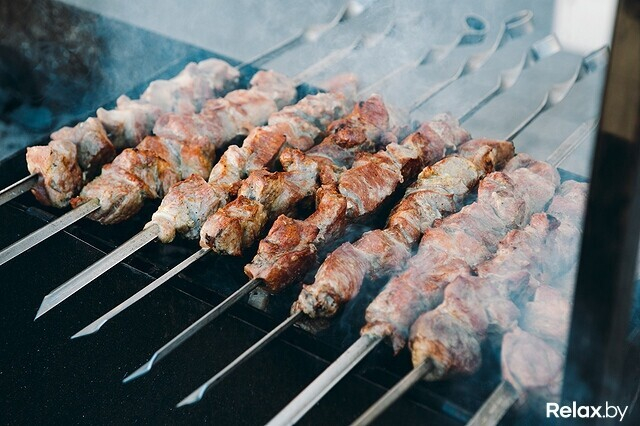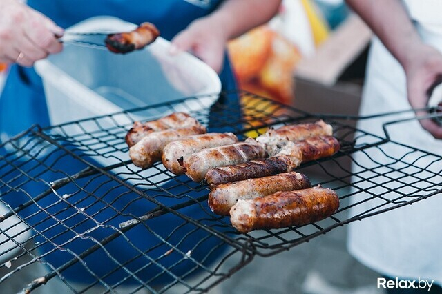 Перекусить или плотно пообедать минчане могли за длинными столами, расположенными по обе стороны от сцены: один — пониже, со скамейками для сидения, второй — повыше, для самых стойких. Рядом обосновались небольшие отдельные столики с лавочками — на случай, если кому-то не хватит места за общим столом. А места и правда могло не хватить: сытые и довольные без конца сменялись голодными с тарелками в руках — и так на протяжении всех шести часов. По утверждениям организаторов, за время мероприятия было съедено 10 тонн мяса и выпито 20 тысяч литров «Боржоми».