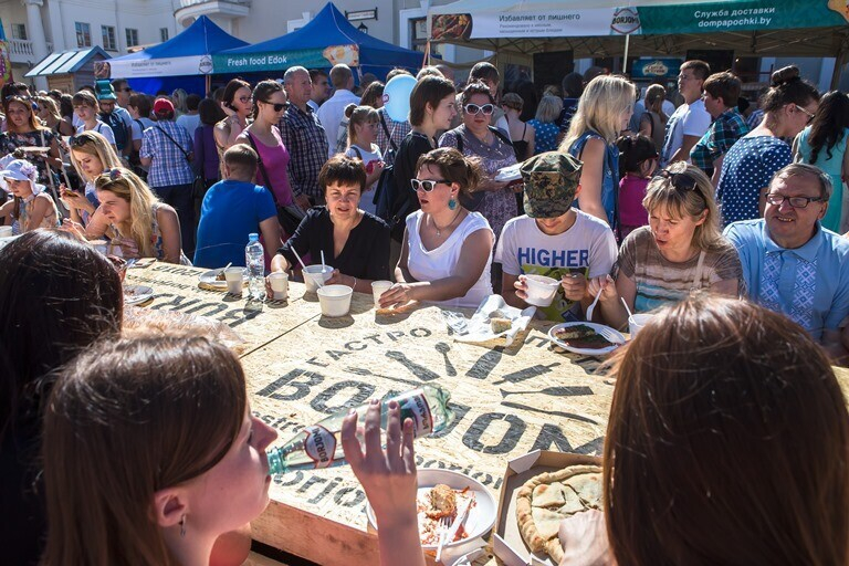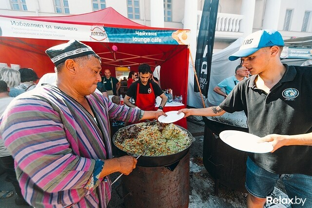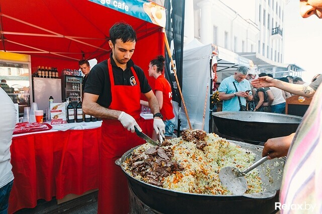 Этим летом минский фестиваль стал настоящий кулинарным марафоном — на фудкорте, представленном двумя десятками ресторанов, до самого вечера неустанные гости мероприятия стояли в очередях за шашлыком, хинкали и хачапури, а повара не успевали наполнять тарелки страждущих свежеприготовленными угощениями. К слову, «пробиться» к палаткам с едой было не так уж и просто из-за огромного количества людей вокруг них, поэтому многие становились в очередь, основываясь на собственных наблюдениях: «если отсюда выходят с тарелками с шашлыком, значит, мясо там точно есть».