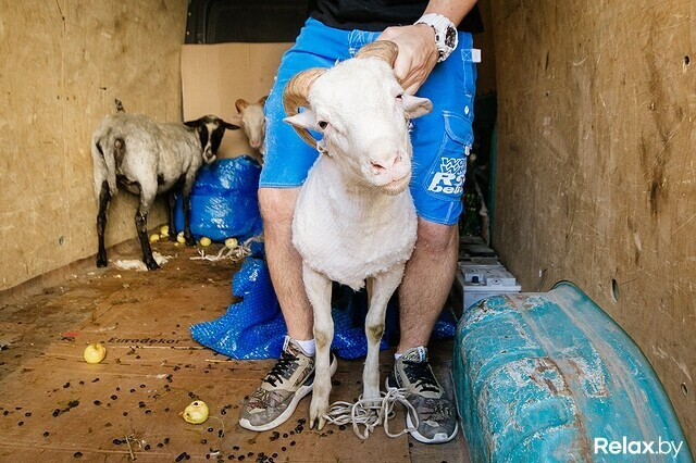 Во время давки винограда в другой зоне фестиваля профессиональный грумер провел стрижку баранов, наглядно продемонстрировав минчанам, как это происходит в Грузии.