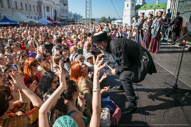 , посвященный культуре Грузии. Несколько тысяч минчан собралось в этот день в центре столицы, чтобы попробовать национальную еду этой солнечной страны, научиться готовить традиционные деликатесы и посмотреть выступления заводных танцоров и музыкантов.