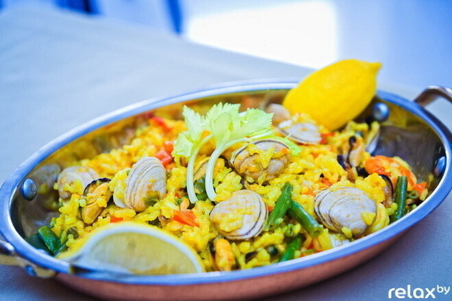 Паэлья. Испанское блюдо на основе риса, также по вкусу и составу напоминающее плов. Готовят его с добавлением шафрана и оливкового масла, морепродуктов, курицы или овощей.