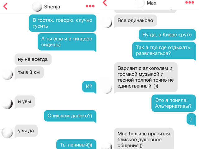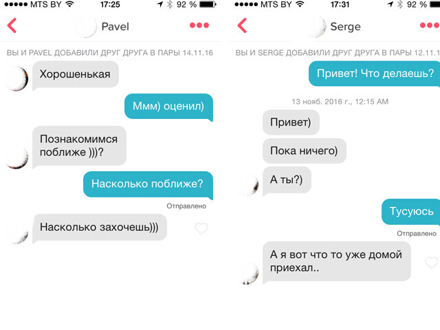 После часа моих потуг стало ясно, что большая часть белорусских мужчин в субботу около 11 часов ночи уже дома в кроватке, уставшие от веселья и баров, просто в гостях, или на деловой (!) встрече, или поют сами себе задушевные песни, играя на гитаре. Всем поголовно надоели тусовки, всем нужно духовное общение, которого в баре не найдешь, а в Tinder они сидят потому, что ищут «ту, с которой будет интересно». Даже после смены статуса на откровенно-прямолинейное «Потусим на Зыбицкой?» ничего не поменялось. Один только уточнил, в трех ли я километрах от него, после чего сделал вывод, что это далеко. Может, надо было добавить «Я плачу»?