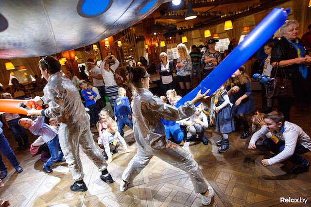 В этот раз мы выбрали главной темой космос. Детей развлекали аниматоры в костюмах космонавтов и пришельцев, а также роботы. Работали зоны аквагрима, бассейна с мячами, лепки, карвинга, занимательной науки, Xbox, виртуальной реальности, мобильного планетария и многого другого. Все активности носили развивающе-образовательный характер. Обязательной частью вечера стала развлекательная программа: фокусники, клоуны, танцевальные коллективы.