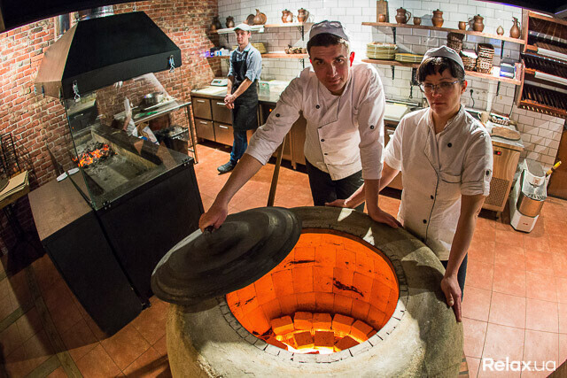 Меню ресторана достаточно лаконичное и представляет собой набор блюд столицы грузинского региона Кахетия — Телави. На компанию можно взять, к примеру, ассорти «Телавское угощение» из рачийского окорока, бризоло, салями с перцем, салями с сыром, маринованных ткемали, баклажанов с орехами, зеленых маринованных помидор, запеченные с ореховой пастой перцев, маринованных цветов джонджоли и специй (около 31 BYN), из супов — харчо (примерно 5 BYN), на десерт —знакомые с детства домашние орешки, только с начинкой из козьего сгущенного молока (около 3,5 BYN). Также в меню найдете большой выбор домашних сыров, сделанных на заказ на семейной ферме под Киевом, грузинские вина, чачу.
