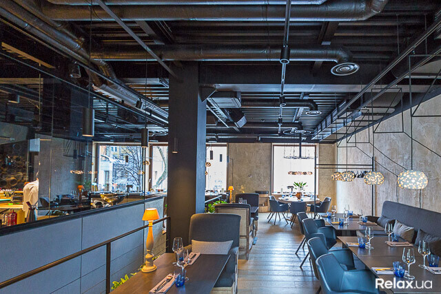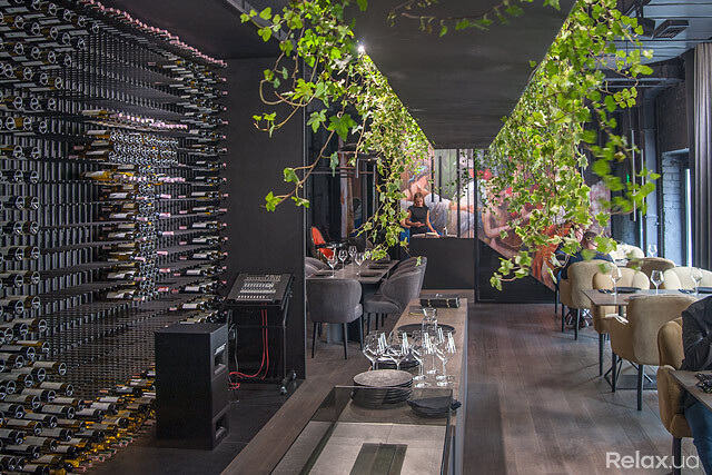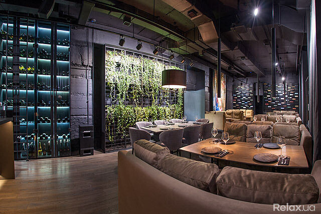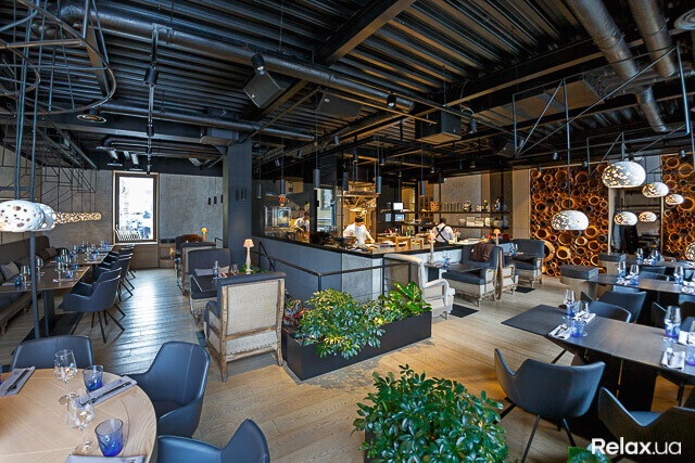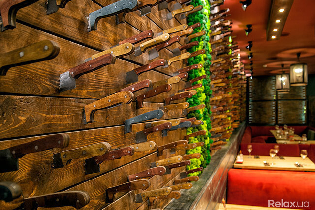 В основе дизайна интерьера — баланс противоположностей, что отражает главную идею ресторана: здесь найдете металл (в оформлении заведения его использовано более 20 тонн!) и дерево, огонь и камень, черный цвет и мягкое освещение.
