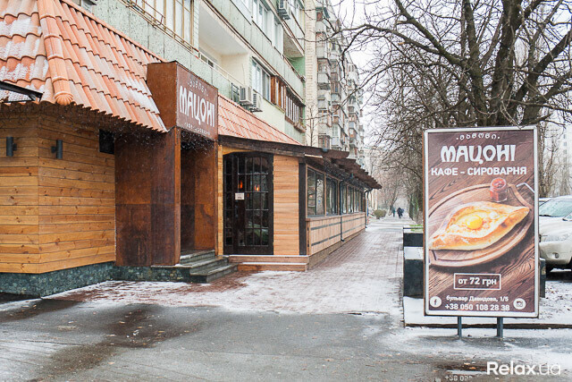 Расположенное в спальном районе и являющееся местной «фишкой» кафе получилось такого формата практически случайно: изначально хозяева планировали открыть обычный грузинский ресторан, но после шеф-повар внес идею делать собственный сыр для хачапури, поскольку нужного в Киеве не нашлось. Так появилась мини-сыроварня, где готовят имеретинский сыр и сулугуни, а также кисломолочный напиток мацони.