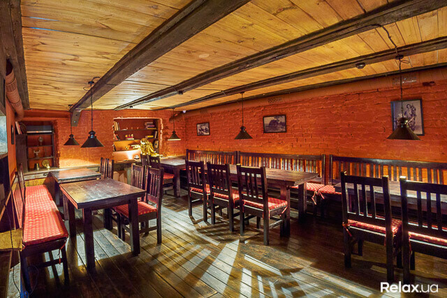 Из закусок можно попробовать тюльку и хамсу с одесского Привоза на черном хлебе со сливочным маслом (около 6 BYN), красный борщ с мясом кабана и пирожками по такой же цене, язычки ягнят гриль с традиционным гуцульским баношем и корнеплодами (около 13 BYN) или вареники с мясом дикого кабана (около 7 BYN).