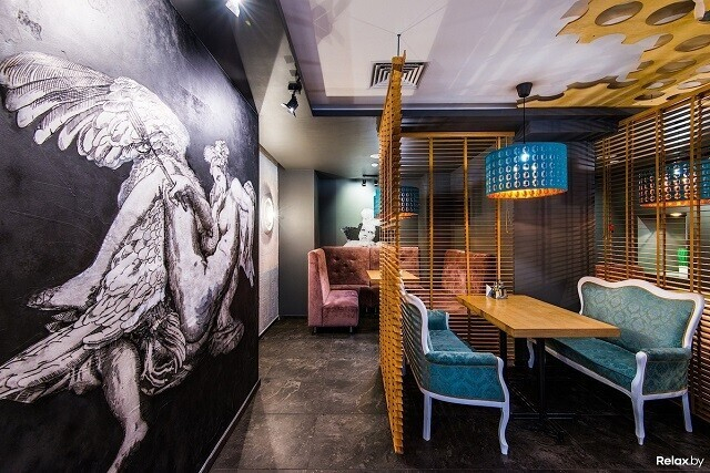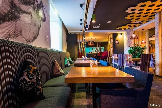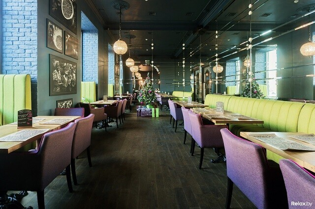 Главная изюминка кафе на Я. Купалы, 17 — в его ярком интерьере, знакомом завсегдатаям этой локации еще в те времена, когда над входом не было вывески Union Coffee. Интерьер выполнен в мягких цветах — оливковом и сиреневом, а дополнен оригинальными снимками на стенах, зеркальными шарами под потолком, огромными окнами и диванами на месте подоконников. Ужиная, тут приятно понаблюдать за столичной суетой. По пятницам и субботам сюда приглашают известных диджеев и певиц.