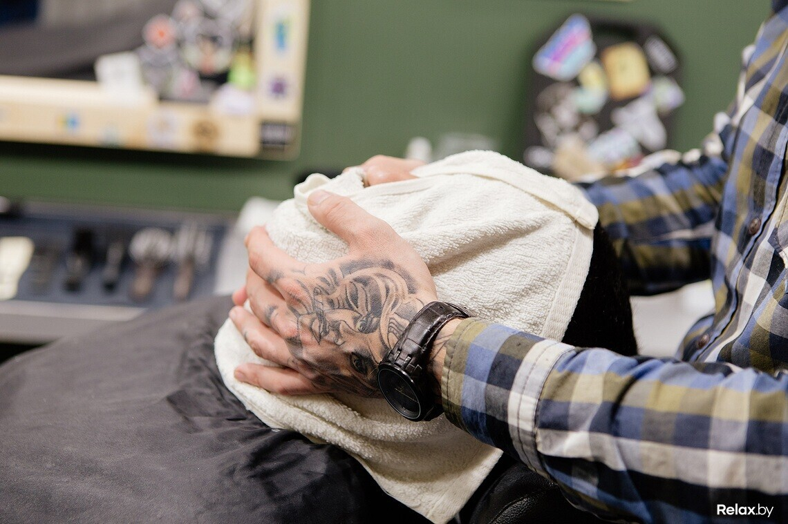 Для многих клиентов распаривание — одна из любимых процедур, так как полотенце пропитывается не только водой, но и ароматическими маслами. Ощущения очень приятные. «Сейчас волосы и кожа смягчаются. Поры раскрываются, и волоски чуть больше выступают из волосяных луковиц. Это помогает чище выбривать».