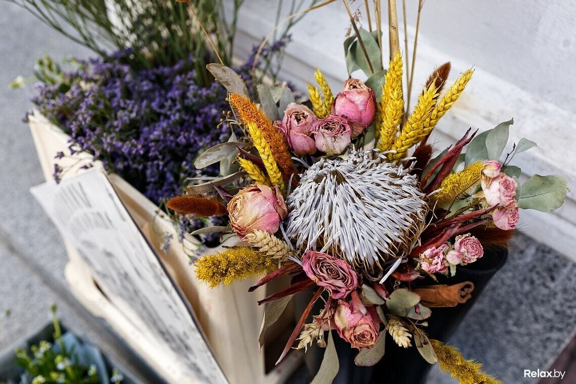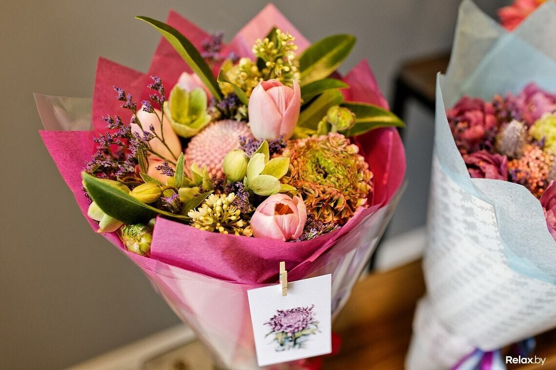 Здесь не получится купить сотню роз, как на картинках в интернете: такие букеты создатели считают несколько вульгарными и всегда предлагают некую интерпретацию: зелень вдобавок или креативную упаковку. А еще тут не найти деревенскую гвоздику или местные цветы из теплиц, какие продают на вокзале. Отечественные тут только полевые цветы, красивые и недорогие.