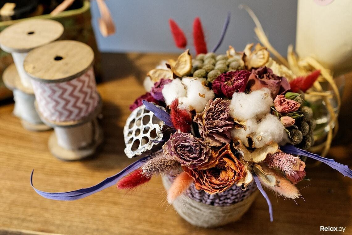 — Кто-то берет впрок, а потом жалуется, что цветы умирают. Мы же, если видим, что цветы устали, делаем из них сухоцветы или венки. Это непросто и требует конкретных навыков, зато за полгода не выбросили ни единого цветка.