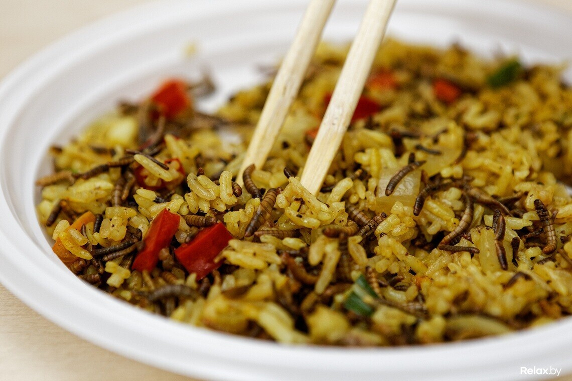 Блюдо № 3: мучные черви с рисом