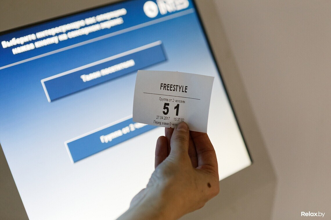 На входе в аквапарк нас встречает — сюрприз! — электронная очередь в кассу. Очень удобная штука при большом наплыве посетителей: взял талончик и спокойно ждешь, пока тебя пригласят.