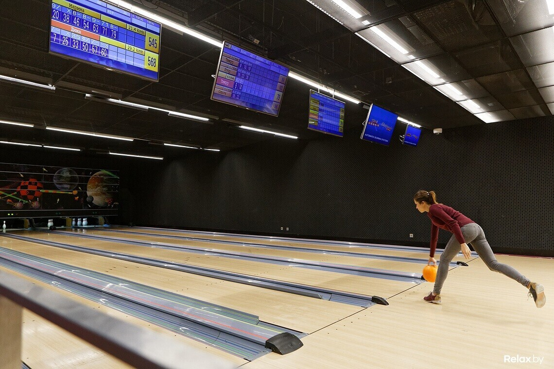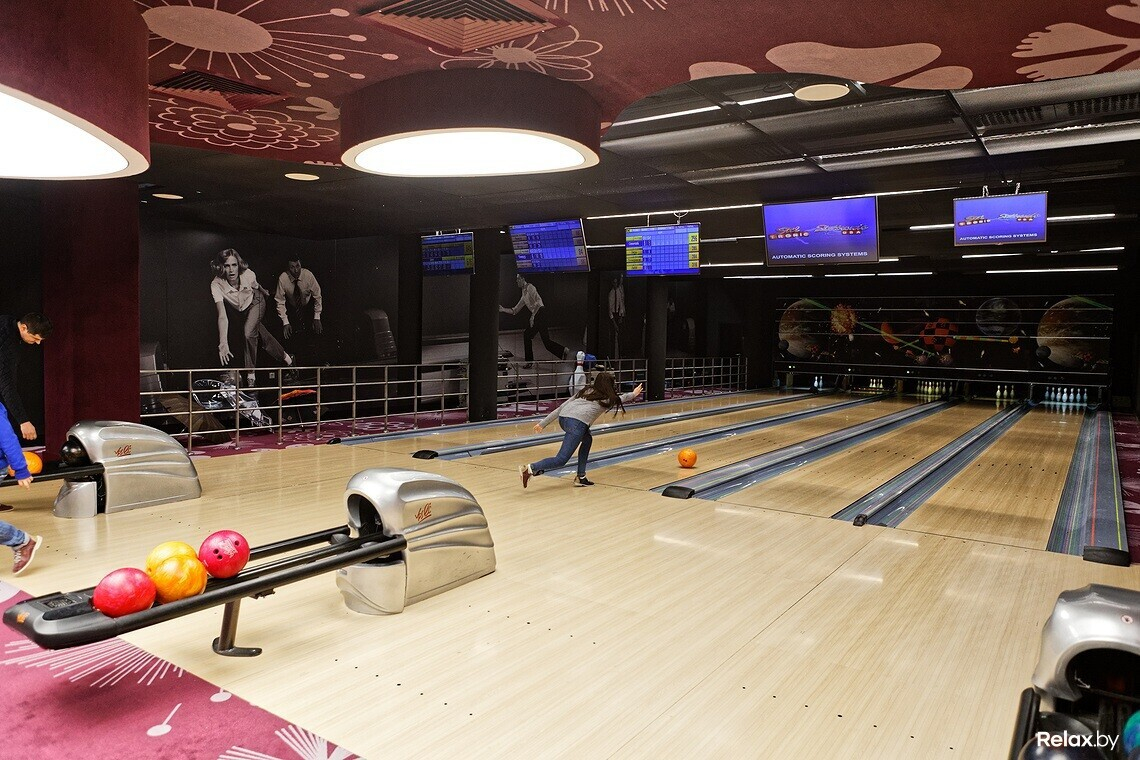 По соседству грохочут шары для боулинга. Здесь 5 дорожек, 2 из которых трансформируются в детские.