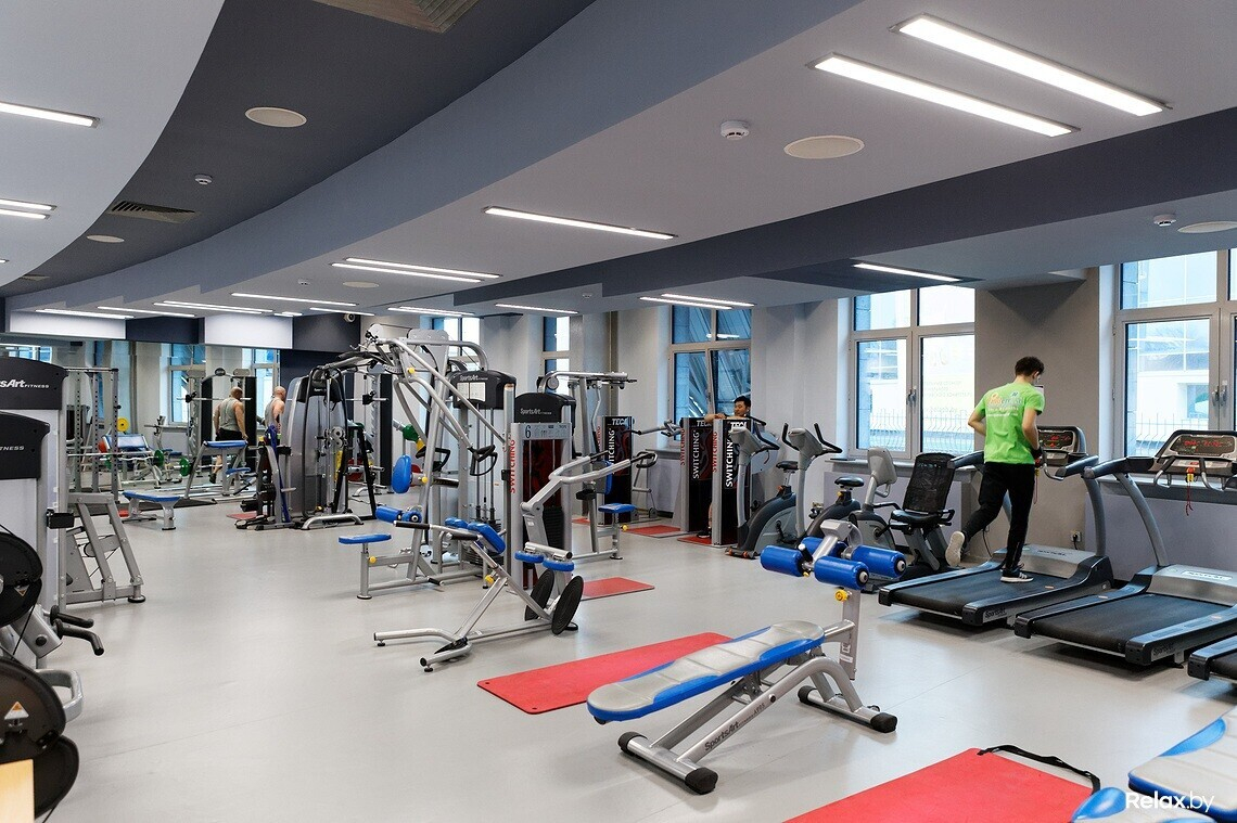 В этом зале царит суровая атмосфера: гири, штанги, тренажеры — можно прокачать все группы мышц. На самом деле мы просто попали в «мужское» время: девушки сюда тоже приходят, чтобы заняться фитнесом. Кстати, здешние тренеры предлагают 12 различных видов тренировок. В том числе, супермодный пилатес на реформере.