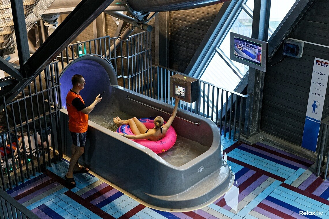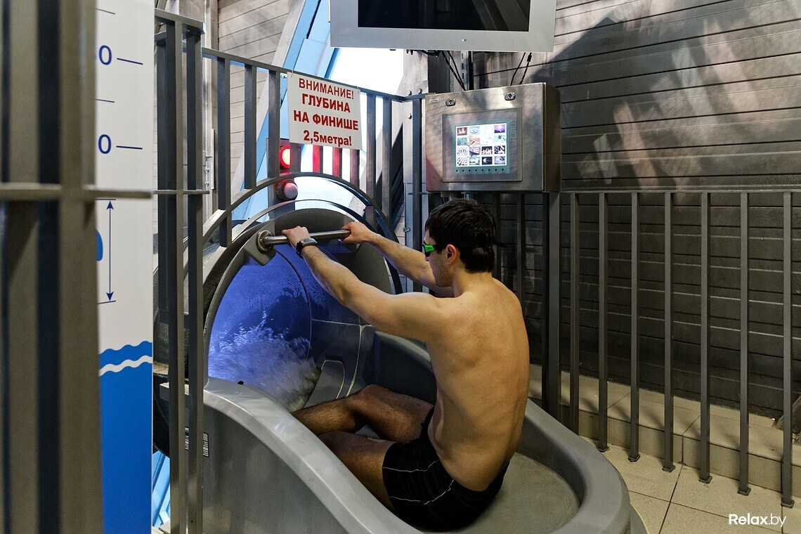 А это самая суровая горка: в конце вас поджидает глубина в два с половиной метра. Пускают сюда только тех взрослых, кто хорошо плавает.