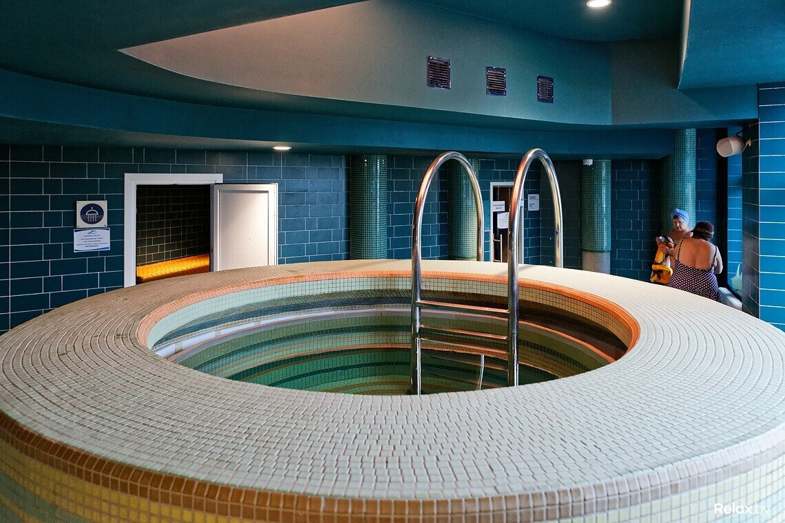 Рядом с аквазоной располагаются бани на любой вкус: русская паровая, средиземноморская терма, финская сауна, тепилариум и хаммам (турецкая). Здесь же находится первая и пока единственная в стране снежная комната. А для мягкого растирания тела после бани есть ледяной фонтан. Потом можно отдохнуть в теплом бассейне или джакузи.