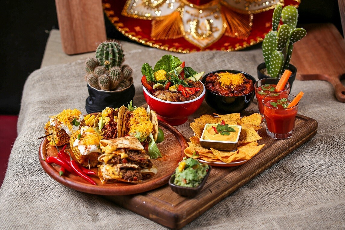1. Мини-тако с копченой курицей, кукурузой и маслинами и со свининой, грибами и копченым соусом